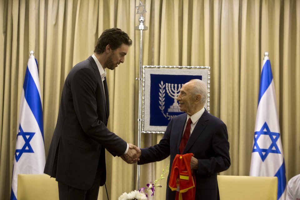 O presidente Shimon Peres, recebeu em sua casa na manhã deste domino (1 de junho de 2014), o capitão dos Los Angeles Lakers, Pau...