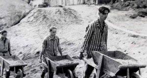 Foto: Judeus escravizados pela Alemanha Nazista e forçados a trabalhar até a morte, esperando a aniquilação pela exaustão.