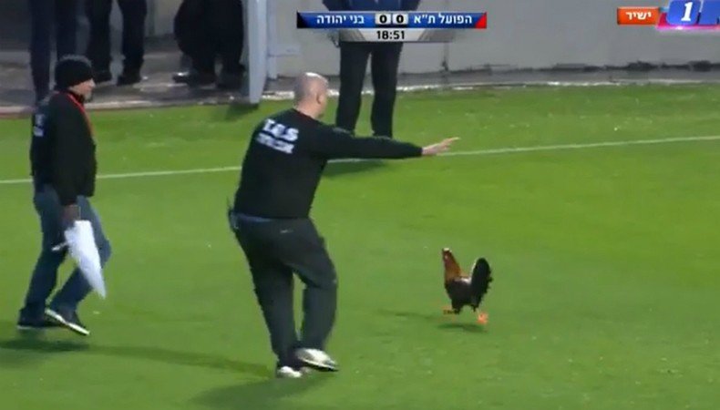 Galo invade campo de futebol em Israel