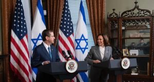 foto: Chris KleponisO presidente Isaac Herzog se encontra com a vice-presidente dos EUA, Kamala Harris, e anuncia...