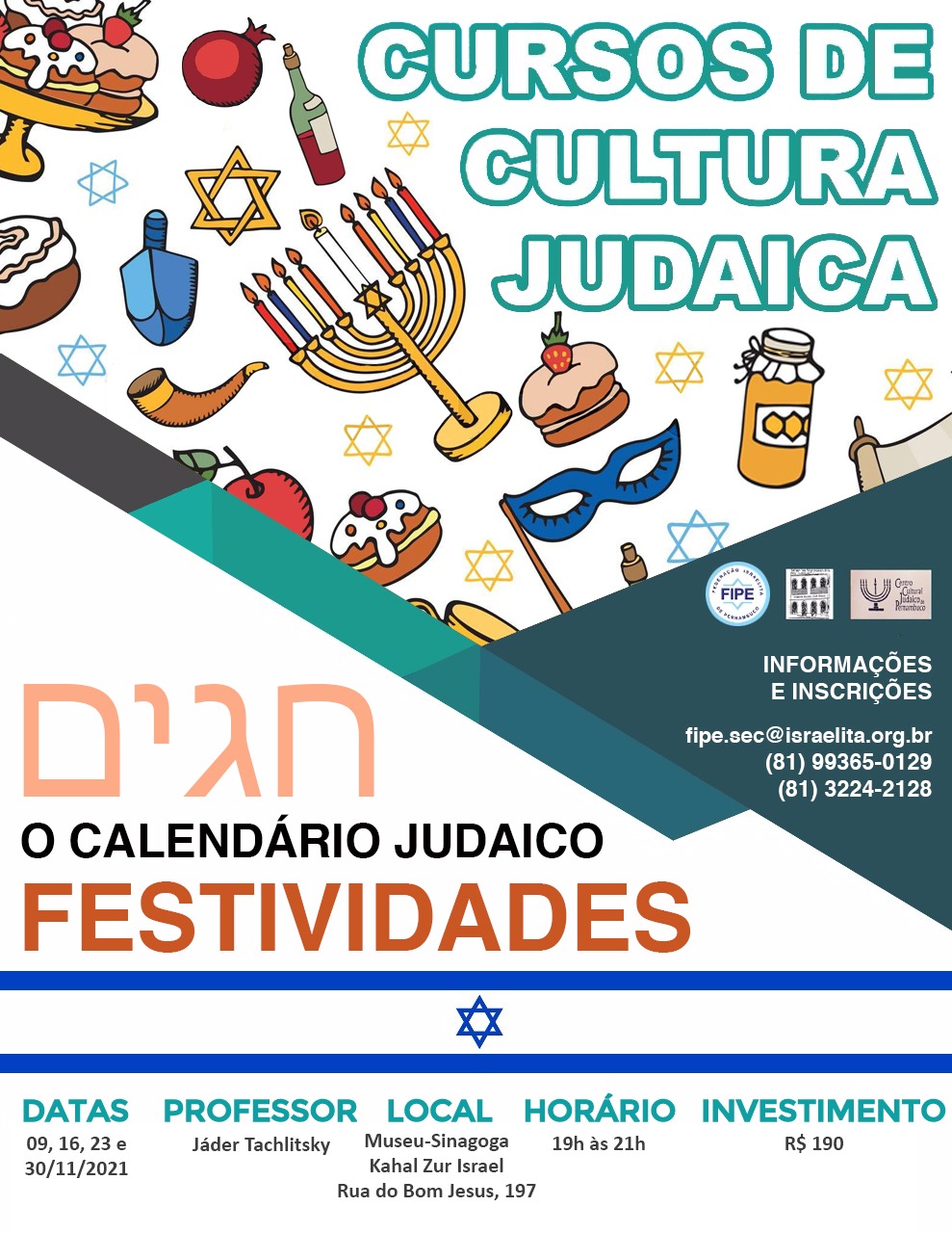Inscrições pelos telefones (81) 3224.2128, (81) 99365-0129 ou pelo e-mail fipe.sec@israelita.org.br